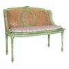 Custom upholstered with a fresh neutral cushion, this settee brings bold personality and functional charm—perfect for an entryway, sunroom, or lounge space. Solid and sturdy, with wear consistent with age and a beautifully aged patina to the rattan.
